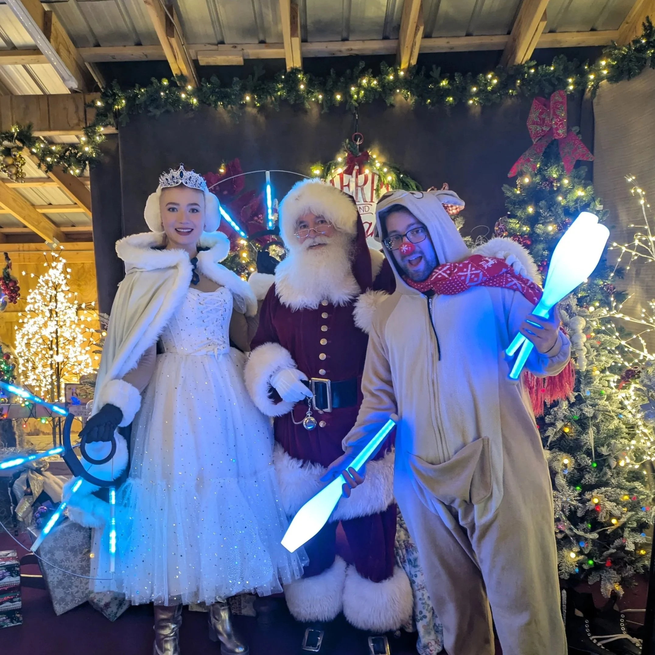 Juggling Elves and Reindeer: Our juggling elves and Reindeer bring a burst of energy and festive fun to any event. Dressed in their best holiday attire, they juggle everything from candy canes to glowing ornaments, spreading cheer and delight. They're a perfect addition for holiday markets or corporate Christmas parties.